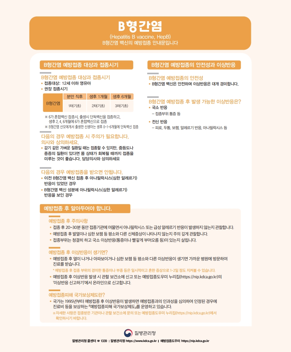 B형간염 예방접종 안내문