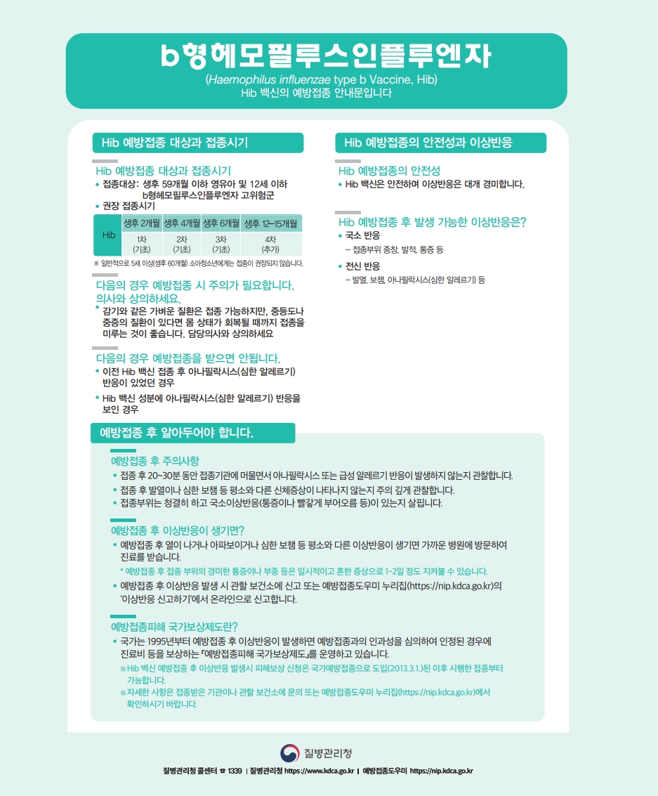 b형헤모필루스인플루엔자 예방접종 안내문