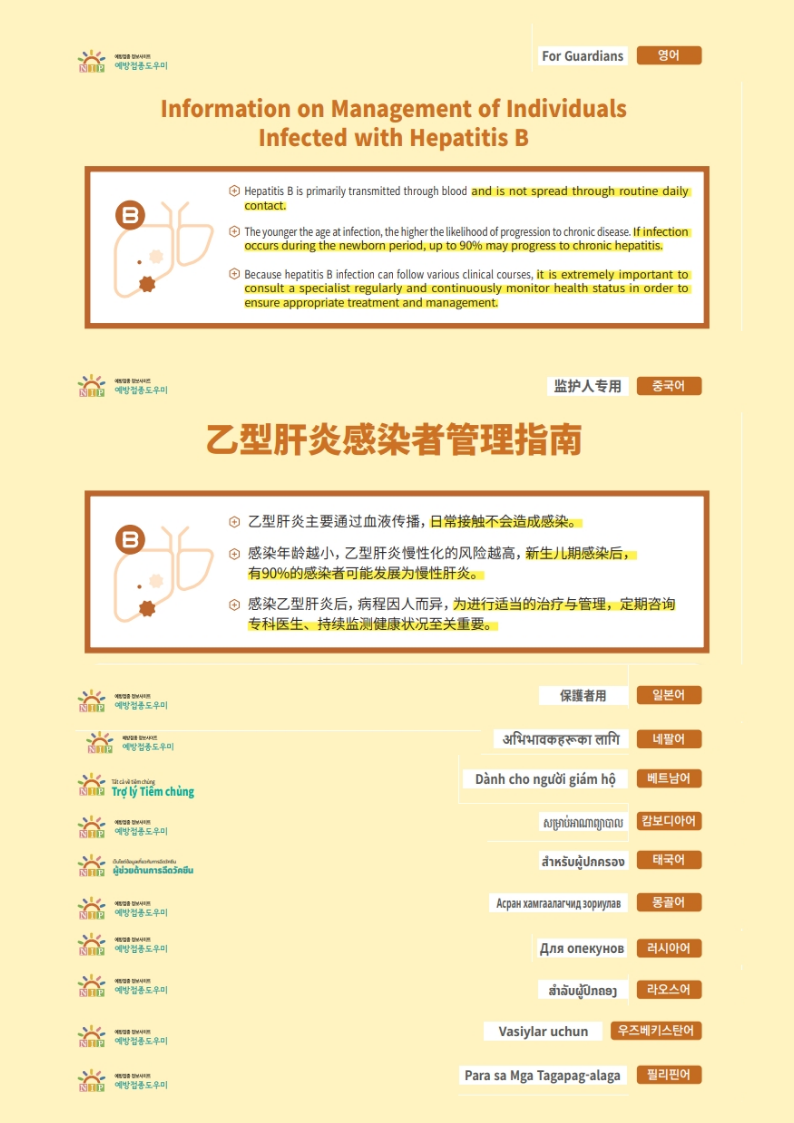 2026 B형간염 감염자 관리 안내문(다국어)