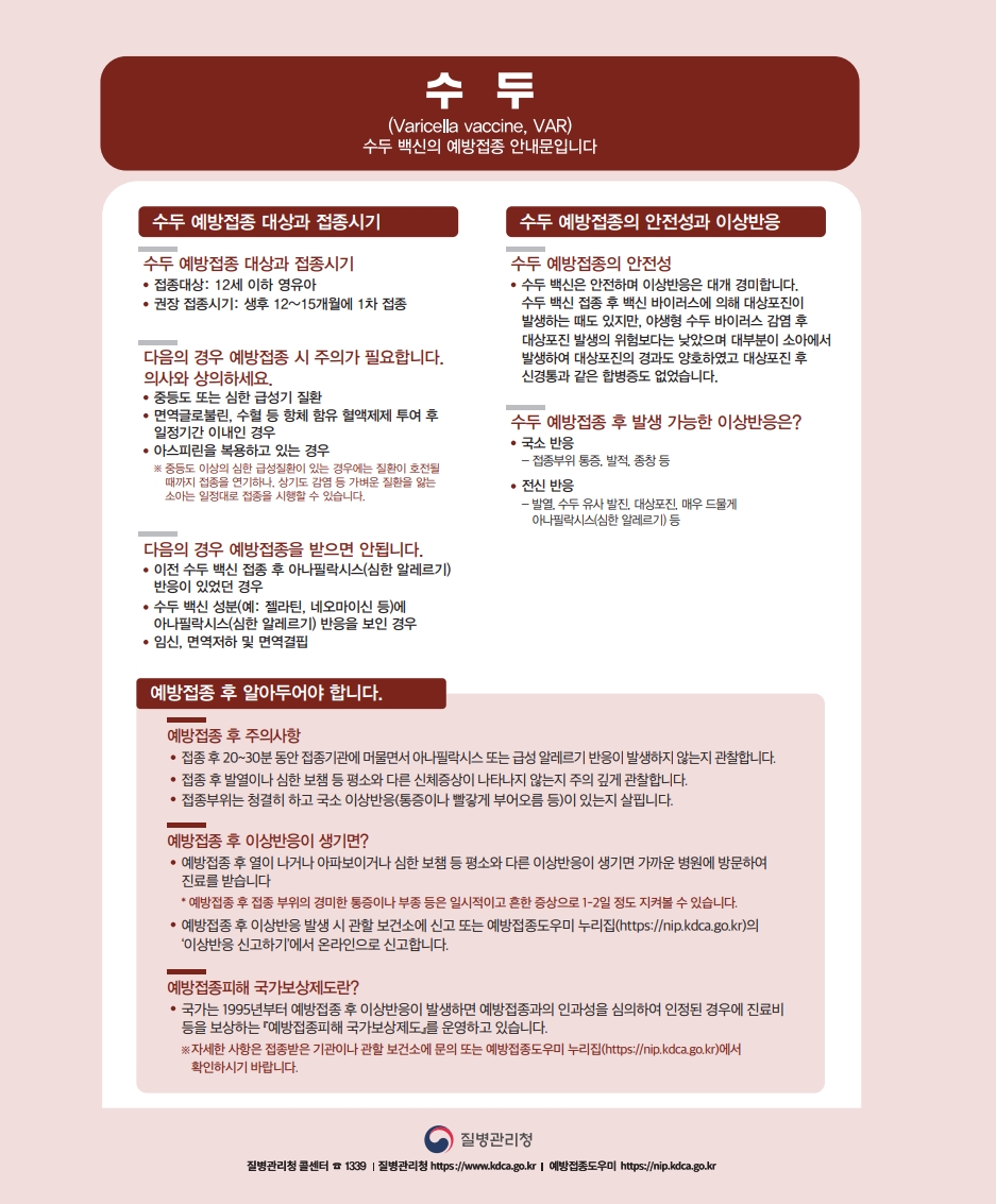 수두 예방접종 안내문