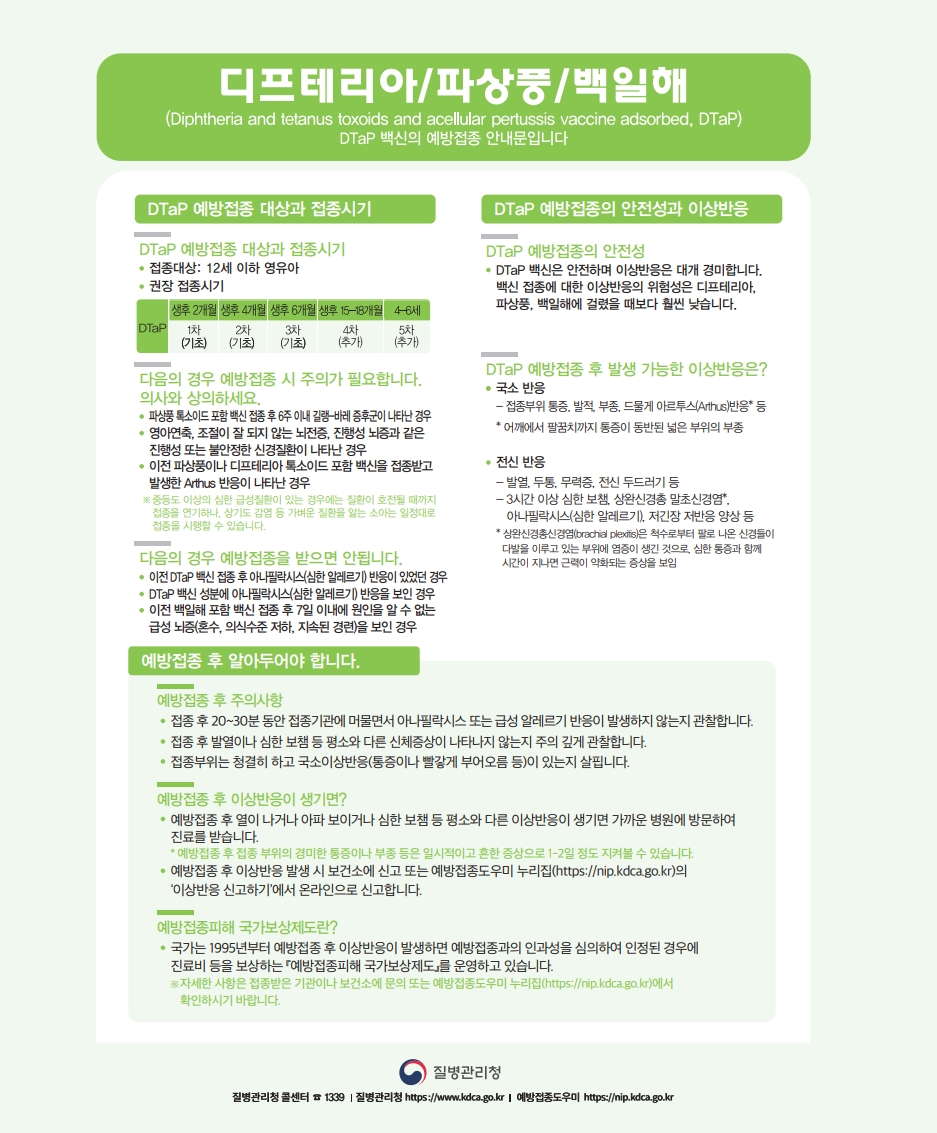 디프테리아/파상풍/백일해(DTaP) 예방접종 안내문