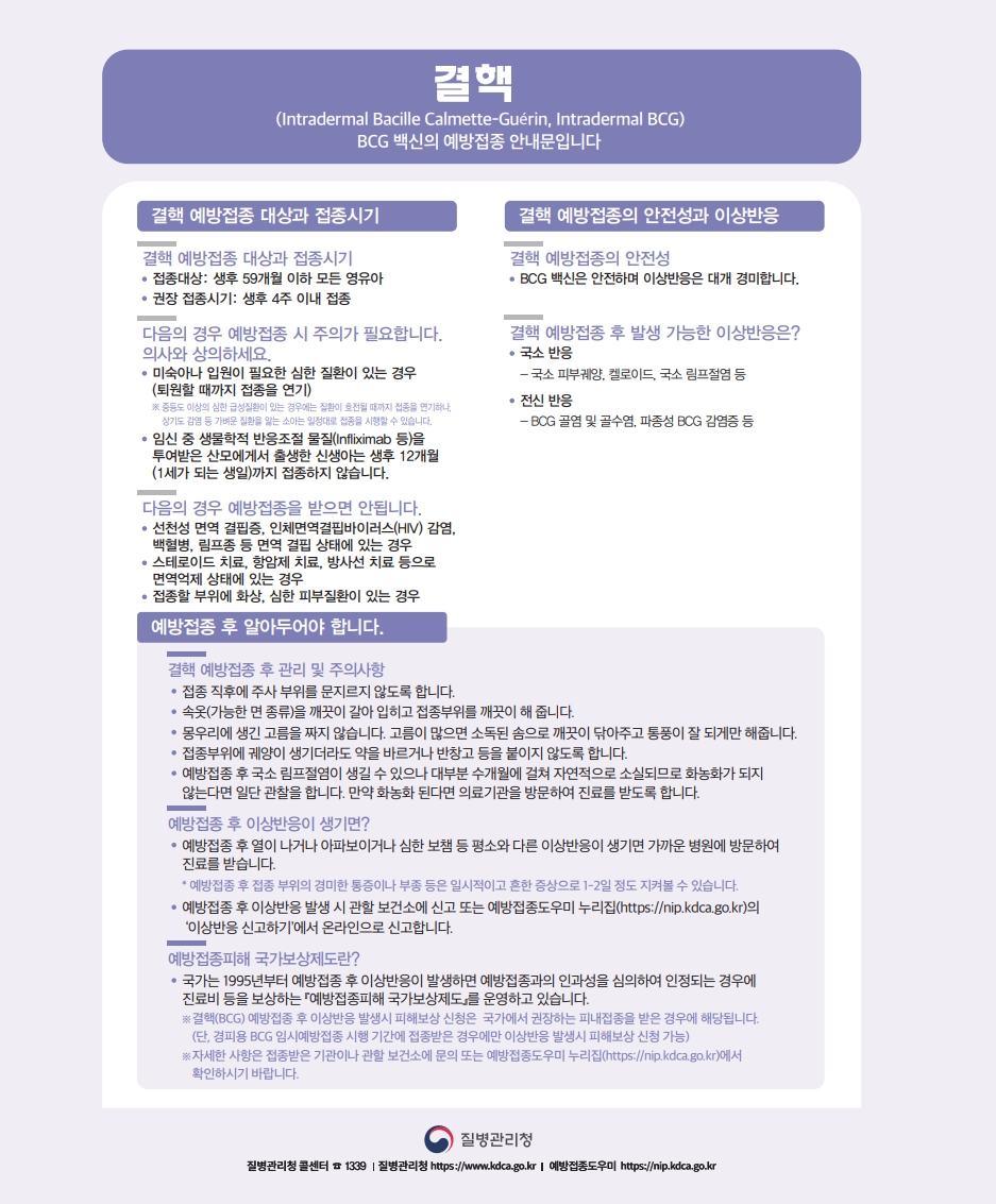 (결핵) BCG 백신 예방접종 안내문