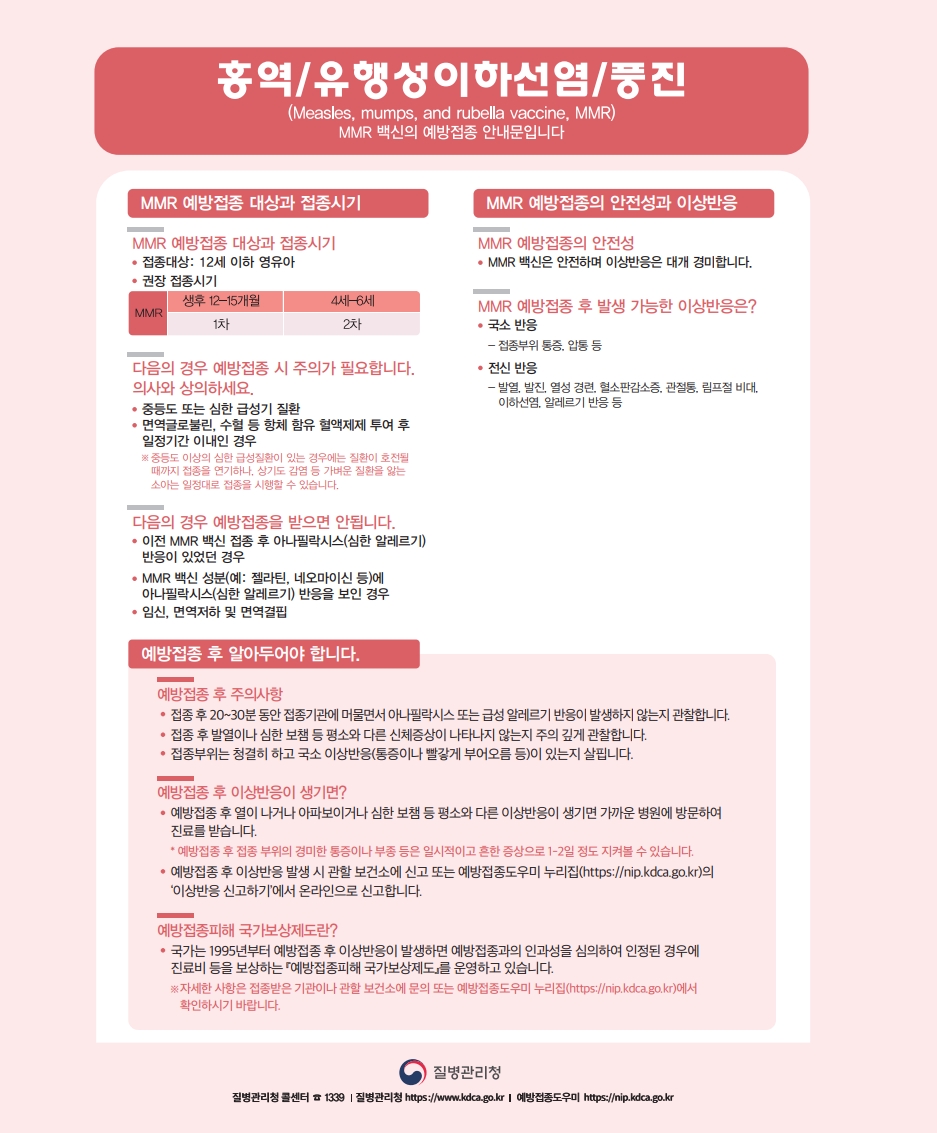 홍역/유행성이하선염/풍진(MMR) 예방접종 안내문