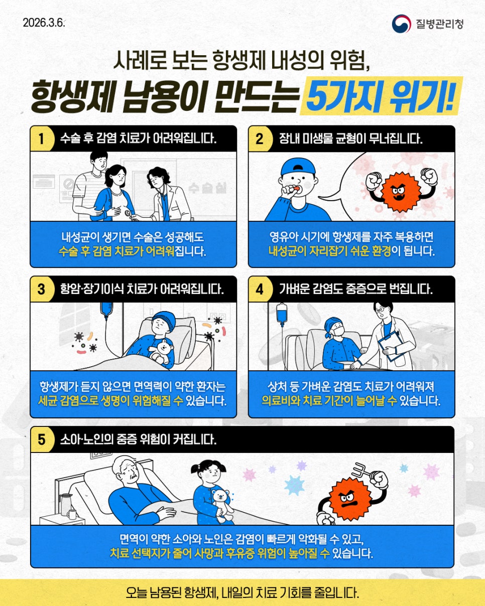 사례로 보는 항생제 내성의 위험, 항생제 남용이 만드는 5가지 위기!