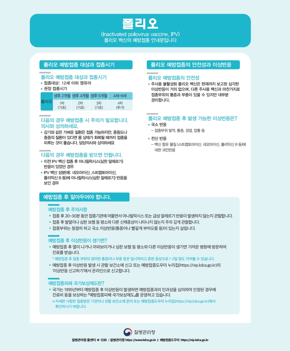 폴리오 예방접종 안내문