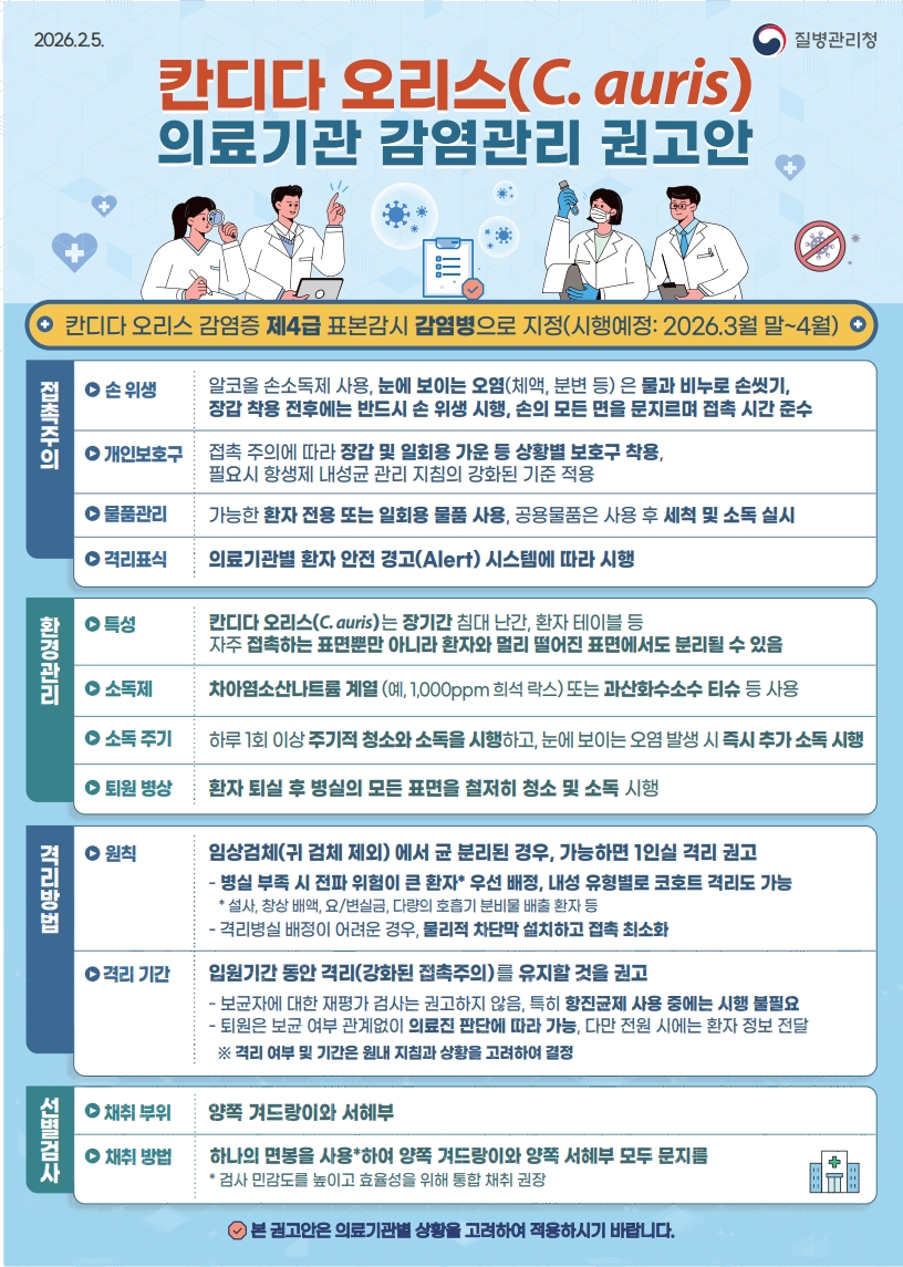 칸디다 오리스(C. auris) 의료기관 감염관리 권고안(질병관리청)