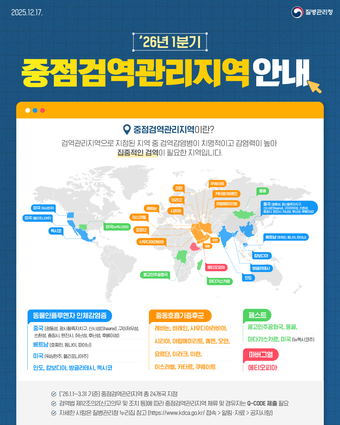 '25년 4분기 중점검역관리지역 안내