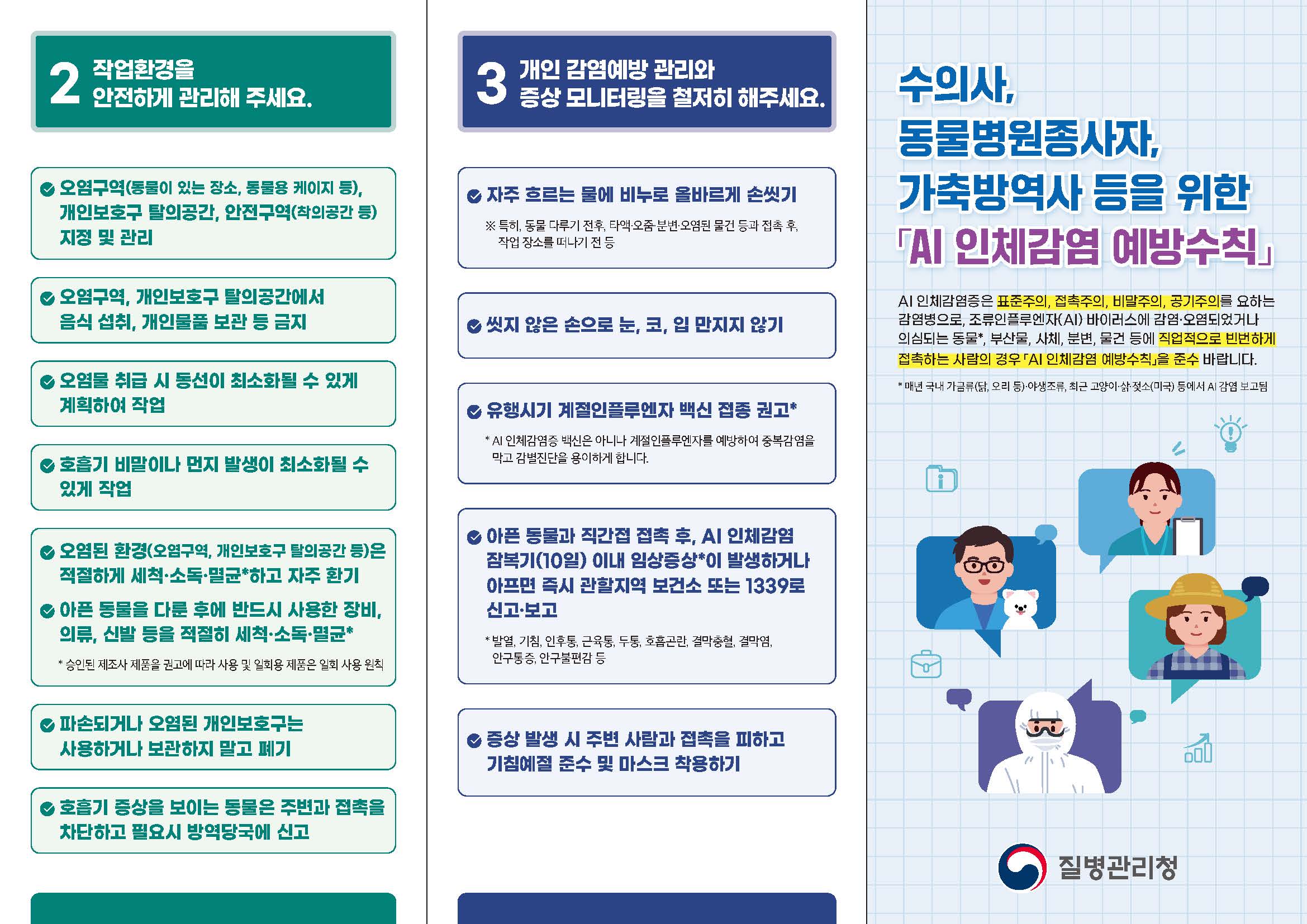 수의사, 동물병원종사자. 가축방역사 등을 위한 AI 인체감염 예방수칙