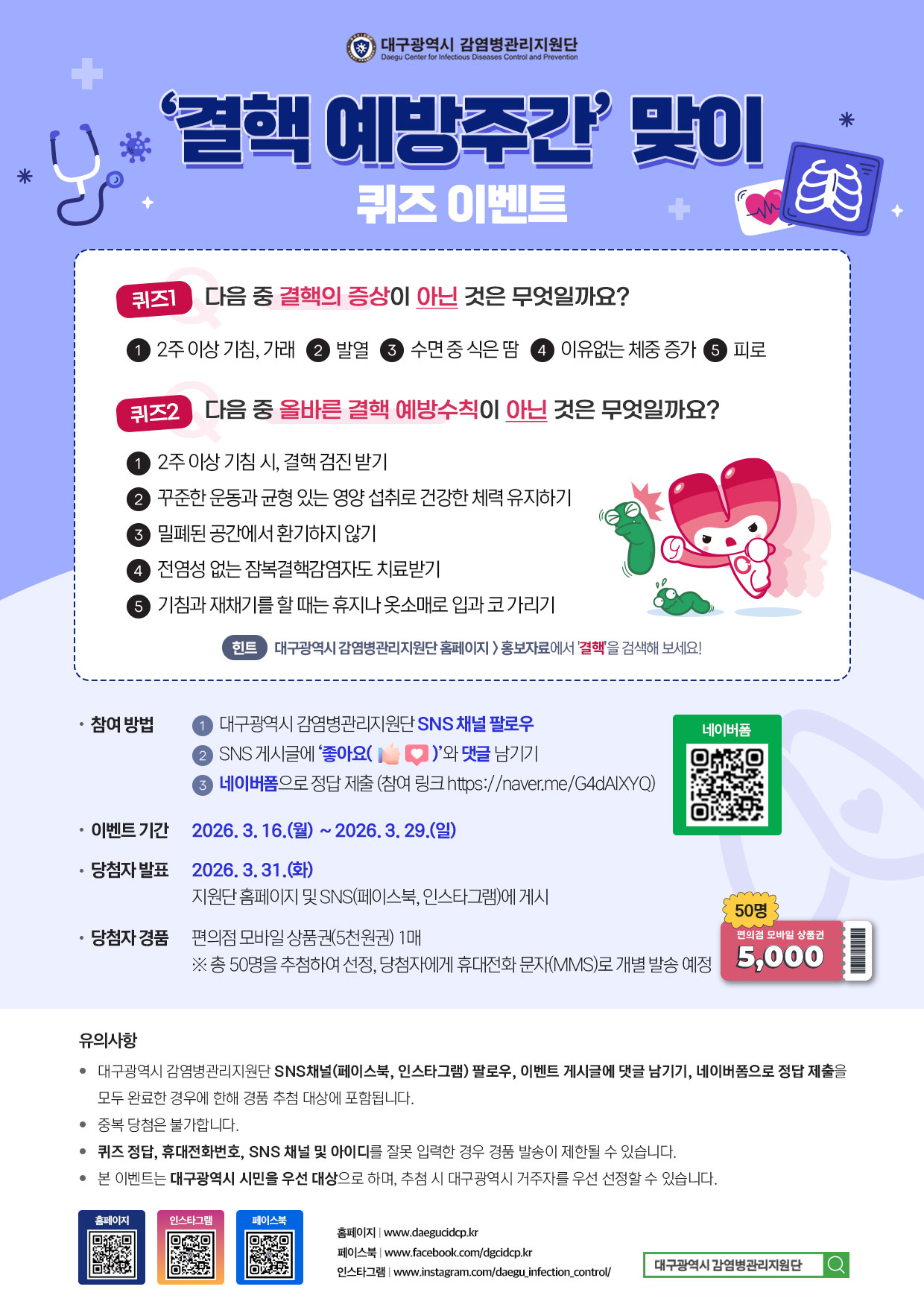 [종료] '결핵 예방주간' 맞이 퀴즈 이벤트