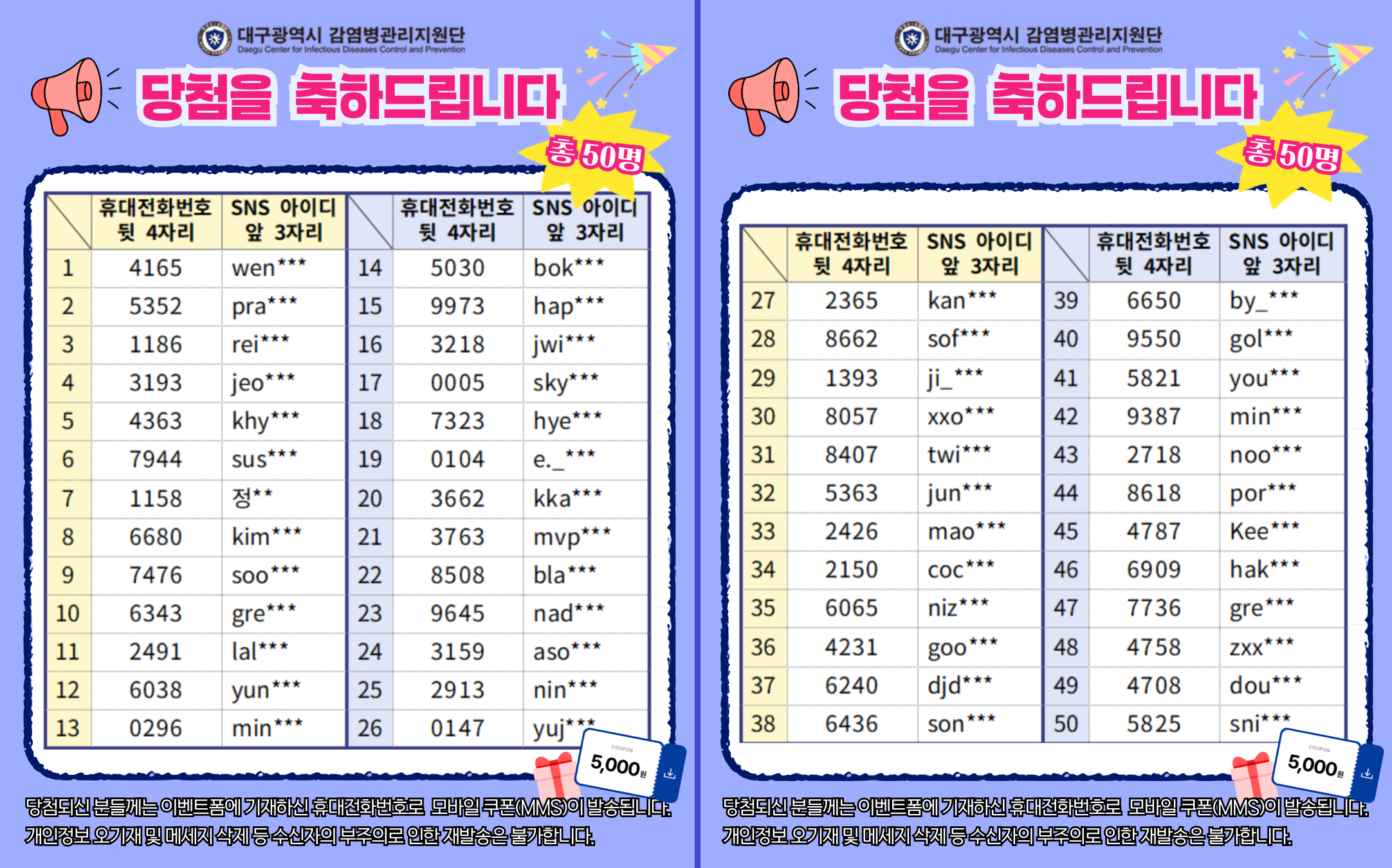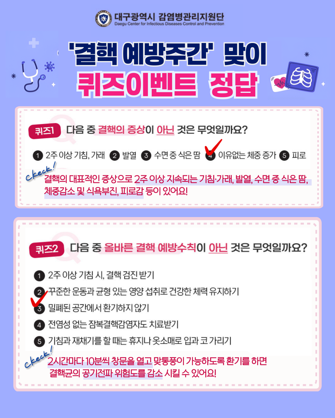 [당첨자 발표] '결핵 예방주간' 맞이 퀴즈 이벤트